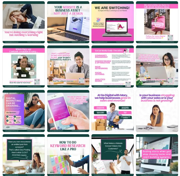 I’m Mary, your reliable digital marketing assistant. From every day digital marketing tasks such as content creation, funnel design and automation, SEO and website creation, course and sales strategies, I got you! I'll provide the support you need to keep your business moving forward. Whether it’s 20 hours, 40 hours a month, fulltime or a one-time project, I’ll help you save time, simplify your marketing, and accelerate your business growth.