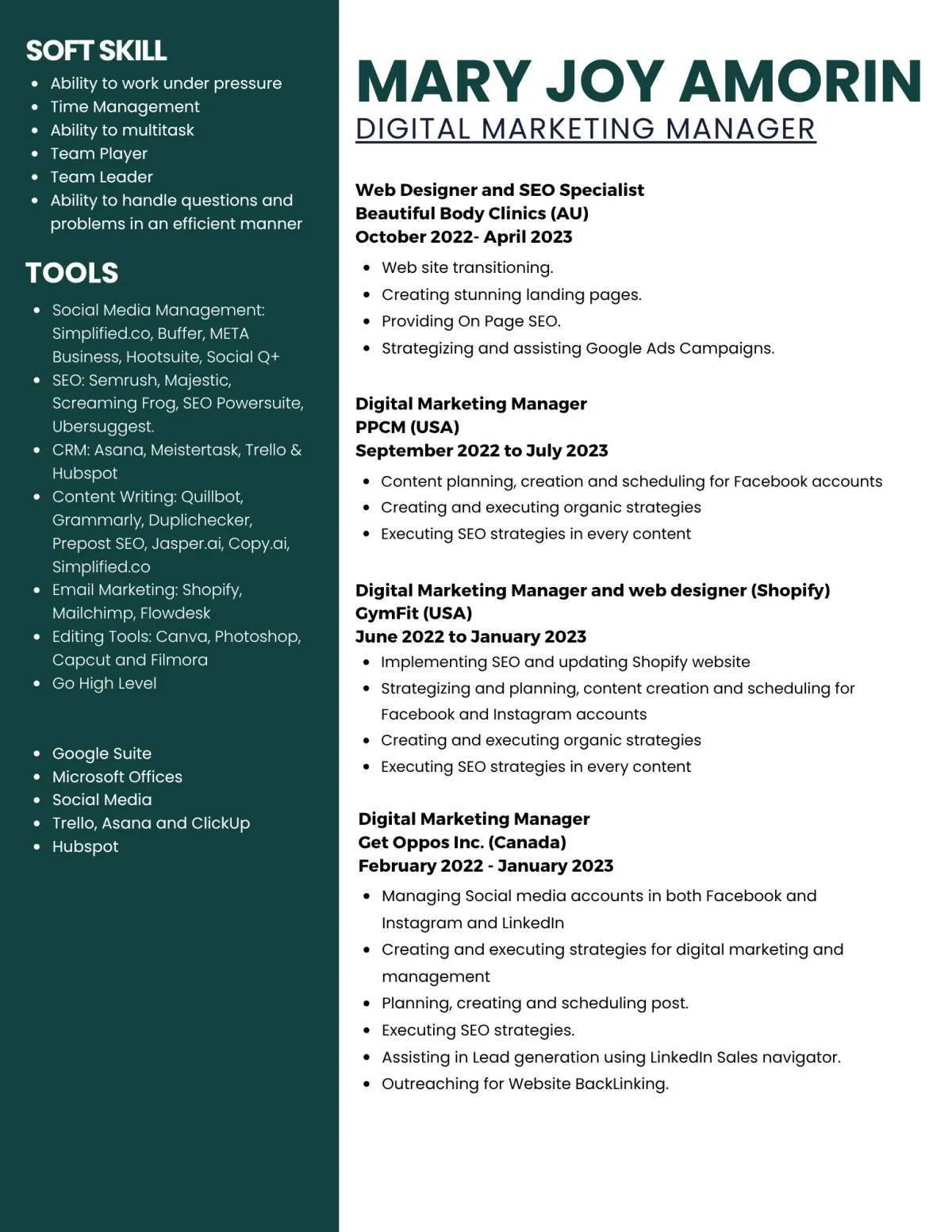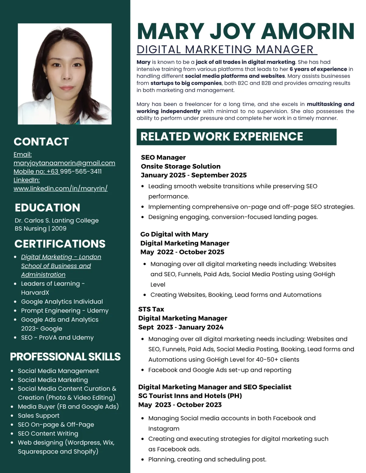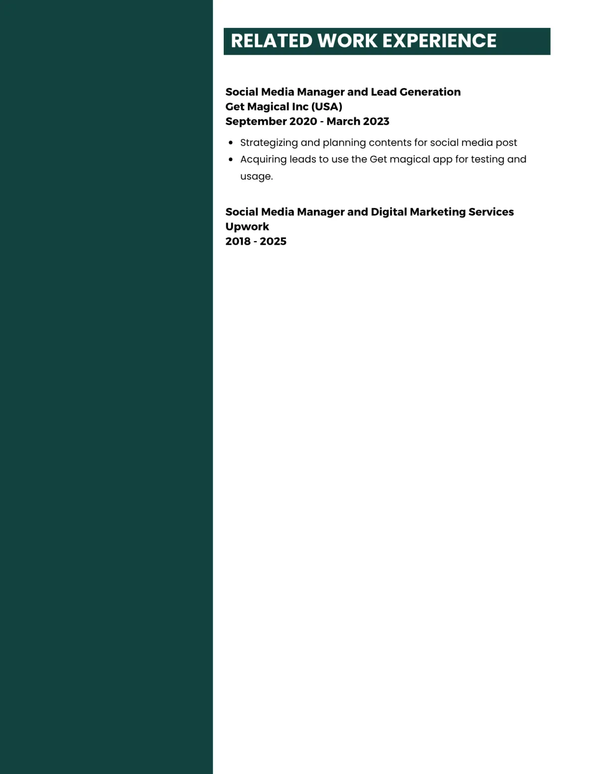 Position — SEO On-page, off-page & Local SEO Specialist · SEO Copy Writer · Social Media Manager · GoHighLevel Specialist · WordPress (Elementor) Developer